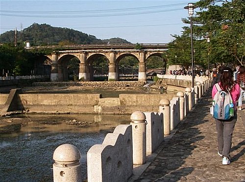 東安古橋是新竹關西地區唯一典雅壯觀的橋、也是最美的古橋,橫跨牛欄河兩岸。建於日據時代昭和二年(1927年)的五拱橋,造型頗為特殊,取材自本地著名的方解石,每一塊橋石各有不同色澤、紋理,加上日月的風霜,使老橋情趣倍增。造型的優美全台僅見,為關西的著名景點之一。