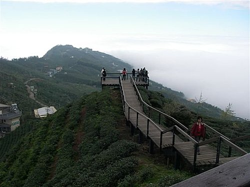 大崙山觀光茶園海拔1250~1500公尺,以栽種烏龍茶為主,面積約一百餘公頃,東與溪頭為鄰,南面杉林溪,西可眺望中部五縣市,北與鳳凰山相對,氣候涼爽,終年雲霧飄渺,氣候變化異常,成為主要景觀特色之一。