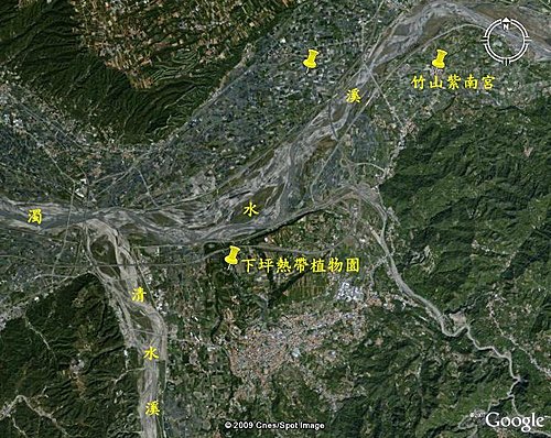 『下坪自然教育園區』位於南投縣竹山鎮下坪里,距離竹山市區3公里,係位於濁水溪與其支流清水溪會流處之上方,面積8.87公頃,海拔高155公尺,年平均溫度23.4℃,年平均降水量2,409公釐,土壤為砂質壤土,由河川沖積,地勢平坦。