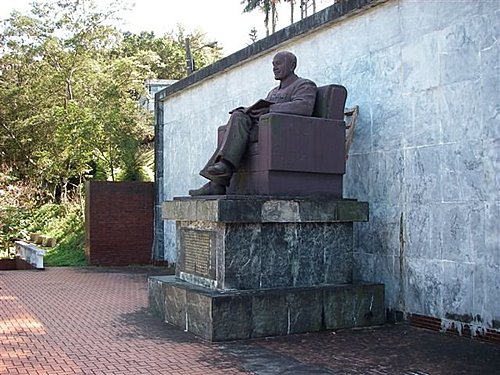 位於花園三路的蔣中正座像及傅積寬題字的碑文