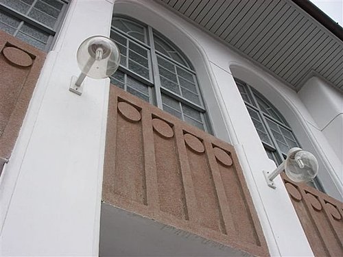 其建築特徵乃以歇山屋頂之山尖作為正向立面,除了二樓中間開圓拱窗外,兩側則開方形窗,形式簡單。建築物的平面為一般鄉鎮公會堂形式,前側上下二層屬於辦公空間,集會堂的部分則為挑高作法,左右兩側皆設有拱廊。