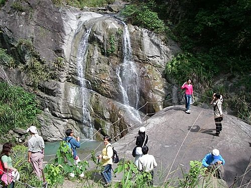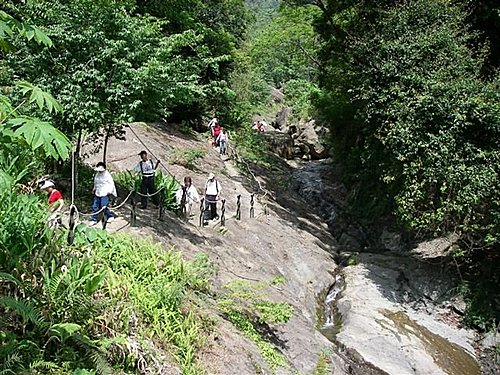 石盤谷瀑布步道,全長1.2公里,其所在谷地,當地人稱之為「竹仔排」。石盤谷是階梯式的特殊河谷地形,因此形成一連串的瀑布,由下往上可以看到風貌不同的各類瀑布,總數共有六個,水量大小不一,也各自呈現不同個性和氣勢。