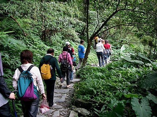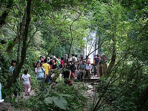 走下觀瀑平台後排隊過