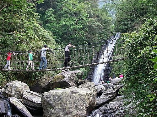 過飛瀑吊橋後可親近