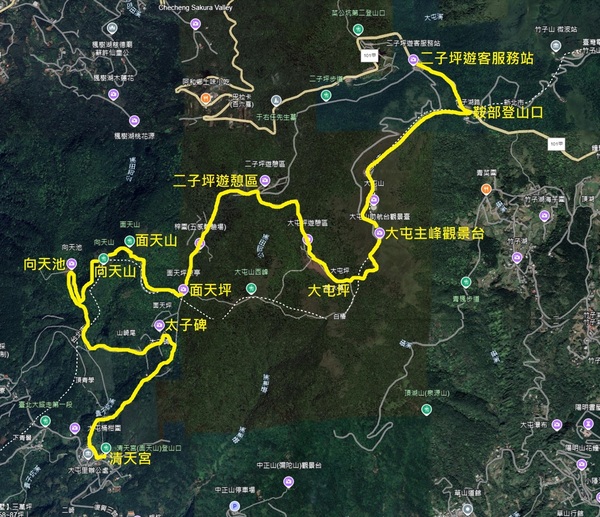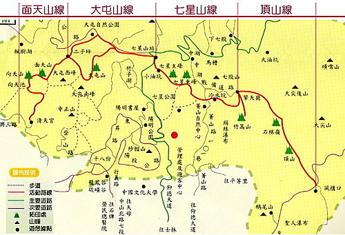 向天山、面天山、大屯主峰、七星東峰、七星主峰、竹篙山、石梯嶺、頂山