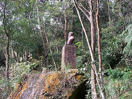 昔日玉山主峰有其雕塑,計3公尺高,意圖補足4,000公尺高度(玉山當時測量數據為海拔3,997米)。唯銅像1995、1996年二次被破壞,後改立巨石上刻「玉山主峰」及新測量數據「標高3952公尺」。