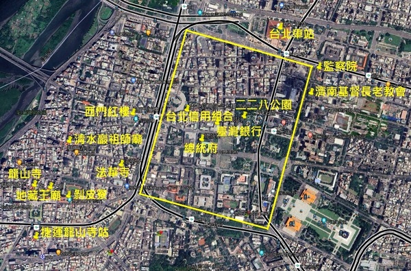 附錄 : 台北古蹟位置圖 (框框為1884年台北城的城牆位置)