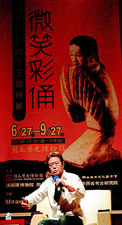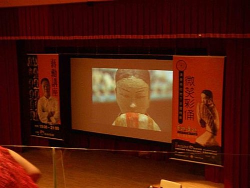 昨天的講座吸引八百人前往聆聽,還有觀眾遠從香港及中南部而來,現場以相當於一層樓高的巨型銀幕播映「微笑彩俑」展品幻燈,原本只有六十公分左右的彩俑瞬間放大,若有似無的微笑在彩俑的眉眼盪漾開來,應證他一再強調的「美比歷史還真實」。