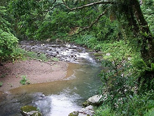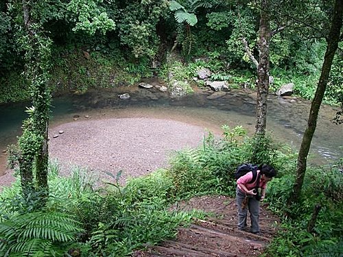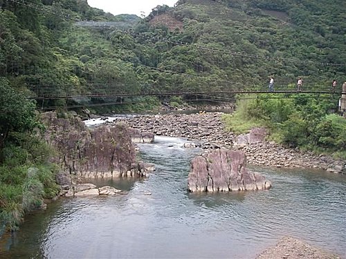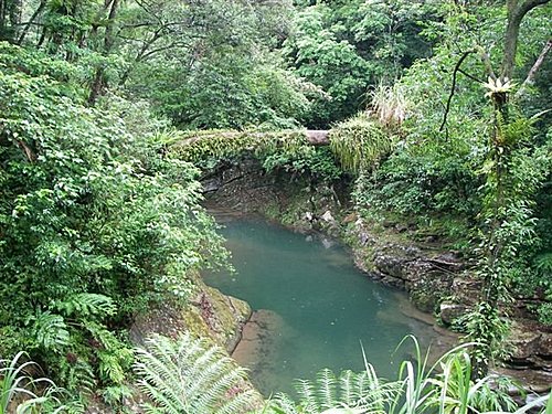 由於地層的擠壓作用,形成一個「S」形的河流,一塊塊巨大的岩石裸露在河床。高大的杉木生長蕨類植物,溪旁有一樹木斜倒到溪的對岸,這就是所謂的「猴橋」,猴子以此樹為橋,來橫越這處深潭。