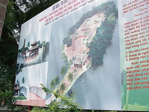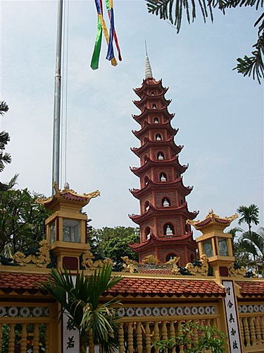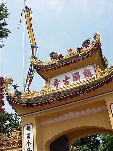 鎮國古寺,位於河內市區北面西湖畔的小半島上,隔著青年路與竹帛湖相對。這古寺原稱鎮北寺,是六世紀黎朝黎利開國時所建,是西湖邊最漂亮的古建築,原名安花村,十五世紀改名為「安國寺」,十七世紀經鄭王修建,住持由雲風法師傳至淨知覺禪師,其遺言是此寺屬曹洞禪。十九世紀時越南由阮朝統治,正式定名為「鎮國寺」。