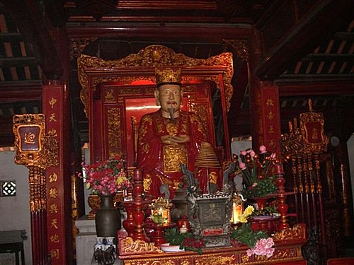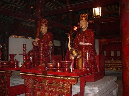 大成殿內供奉著孔子聖像。堂上掛著「萬世師表」的金字紅匾。大成殿之側有藏書房,內藏四書五經等儒學書典。大成殿後的第五庭院為國子監,殿內供奉著越南的儒學大師朱文安,在越南推傳儒學,其在越南的地位類似於中國的朱子。