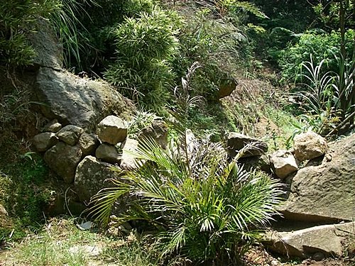 爬過石頭堆砌的圍牆
