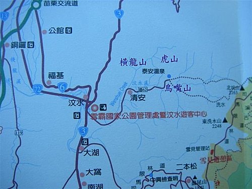 交通:【開車】由北部或南部出發於中山高苗栗交流道下,循 6號省道往公館方向到達汶水後,轉 3號省道南行,在「泰安溫泉」的指標轉入苗62縣道直行可達。