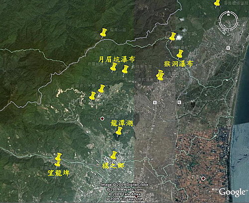 猴洞坑瀑布→月眉坑瀑布→望龍埤