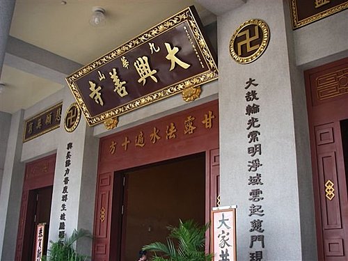 九華山大興善寺原址在苗栗縣苑裡鎮的大興善寺,於74年6月底,遷至苗栗縣銅鑼鄉九湖村十六鄰(小地名茄冬峴),94年12月底鬧分家;新的大興善寺在西湖度假村旁成立,而形成兩個九華山大興善寺,名稱為:「銅鑼」九華山大興善寺和「三義」九華山大興善寺。