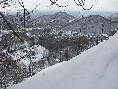 從海拔307米的起跳地點,可以望見札幌市街區及石狩平原的全景,在右後方,可望到舉行70米跳臺滑雪的「宮之森跳臺滑雪競技場」。冬天,是一片白雪覆蓋的「雪白」景色,在沒有比賽的日子裏,遊人可以站在位於起跳地點後面的「展望休息室」模擬體驗跳臺滑雪者起跳時的視線。夏季時用灑水的方法來保證跳臺滑雪,所以,在這個全天候的比賽場裏,夏季有時也會看到跳臺滑雪者的訓練。