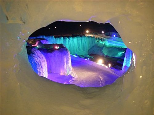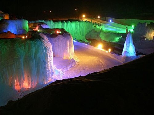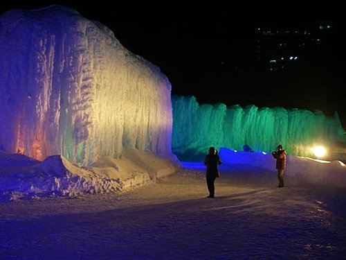 白天這座冰的城堡,看起來有點冰涼,但是到了夜晚打上燈光後,這座城堡就變得富麗堂皇了,如果有機會千萬不可錯過難得的煙火大會。層雲峽冰爆祭共有10次煙火時間,煙火施放的時間為假日晚上的八點半。