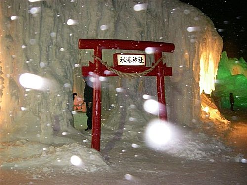 層雲峽冰瀑祭的活動地點位於層雲峽的溫泉街上,會場上林立大小約數十座的冰建築物。不過層雲峽的冰爆祭不同於札幌雪祭,「冰瀑祭」顧名思義是冰的祭典,利用冰搭建成冰的迴廊、冰的展望台、冰橋、冰瀑神社等,遠遠看就如一座冰中城堡般。