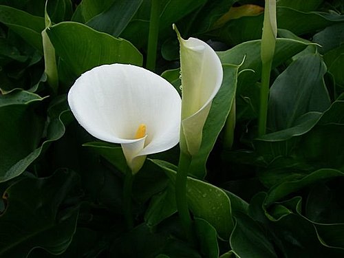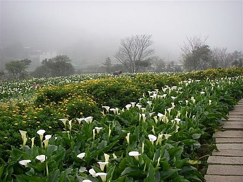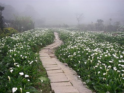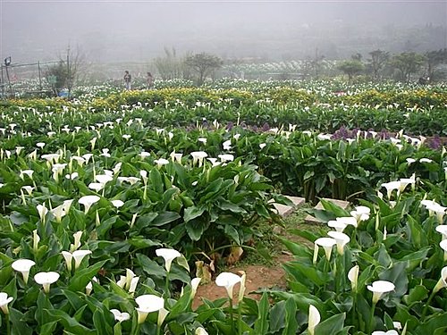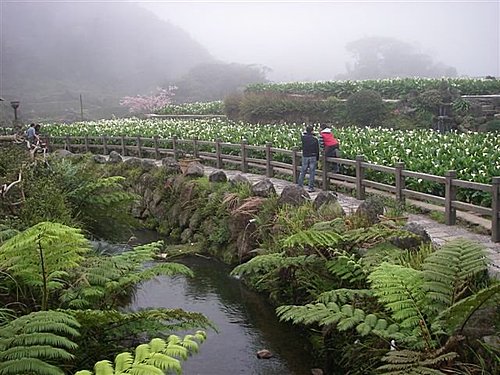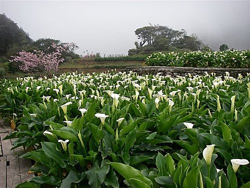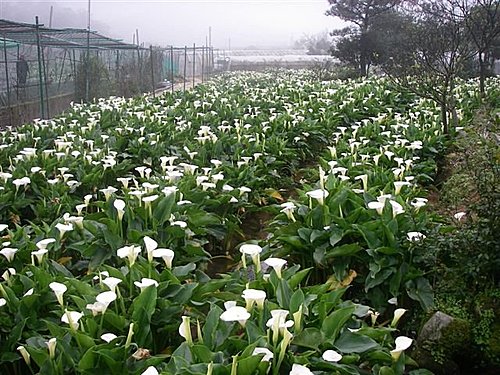 竹子湖水尾一帶,是台灣最主要的海芋種植產區,觀光海芋園主要位於竹子湖路兩旁,山路蜿蜓,片片白綠相間的海芋田襯著三兩農舍的悠閒情境,讓人彷若置身在桃花源內。竹子湖的海芋有九成都是白色海芋。這種海芋因為能夠適應當地濕冷的氣候,生長狀況良好,所以一年到頭都可以開花,差別在於花的數量多寡,因此又稱為四季海芋。