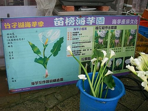 竹子湖的海芋花農約有二、三十戶,開放採花的海芋園就有十來家,其中占地約兩公頃的苗榜海芋園,是面積最大的一座,園區內還有露天咖啡庭園,供應下午茶、咖啡。苗榜海芋園是竹子湖最超人氣的海芋園,由於種植海芋的時間最早,種植面積在當地數一數二,常常吸引老師、學生到此戶外教學,上百人在海芋田裡川流不息,形成一種熱鬧非凡的景象。