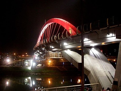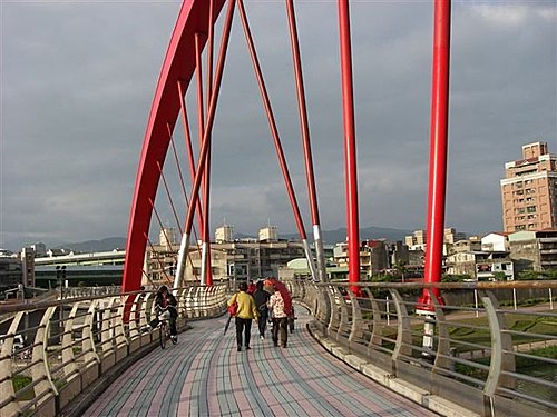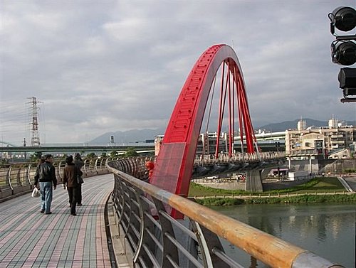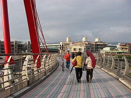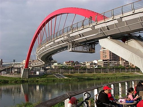 台北市內湖區新明路536巷至松山區饒河街221巷間造型獨特的彩虹橋,2007年底落成。