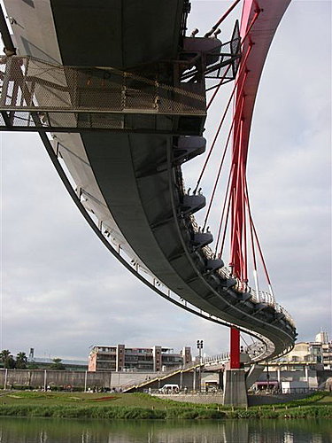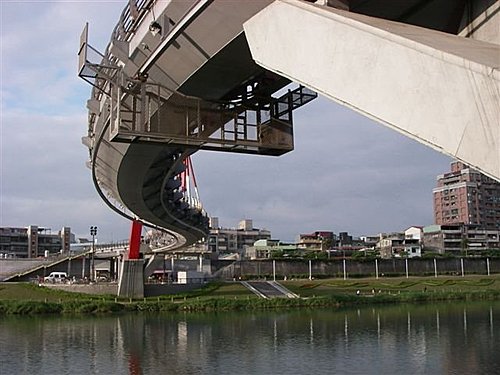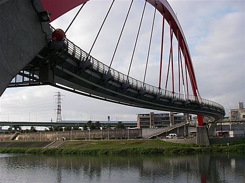 為了配合內湖科學園區的開發,同時方便內湖新明路地區民眾,前往松山饒河夜市及松山車站,而發想設計的彩虹橋,是台北市唯一的行人及腳踏車族專用橋。橋體採用世界罕見的S形,而為了保持橋面平穩,更先經半年的「風動測試」,確認安全無虞才開始施工。是台北新地標。