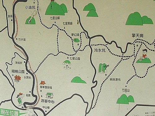 公車總站-陽明山國家公園遊客中心-苗圃登山口-七星公園-教育廣播電台-冷水坑遊客中心-牛奶湖-菁山吊橋-擎天崗-金包里大路城門-嶺頭喦土地公-擎天崗遊客服務站-林語堂故居午餐-雙溪公園-錢穆故居