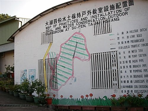 大湖四份水土保持戶外教室成立於西元1989年,至今已有將近20年的歲月,這裡是全台灣首座設立的水土保持戶外教室,而也是設備最完整的觀光果園之戶外教室,所以無論不僅是小學生與中學生會前來觀摩,就連社會人士以及漂鳥營等愛護大自然的團體,也會前來學習、參觀。