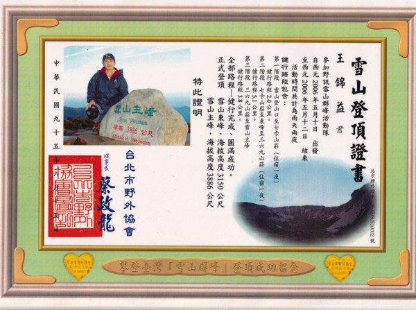 此行參加雪山主東峰攻頂團的