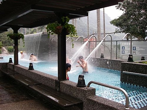 大板根戶外開放式的溫泉露天池設有各種設施,包括足部按摩池、衝擊泉池、鹽水SPA、全身按摩床、臭氧SPA,高中低冰四種溫度的露天溫泉池等。