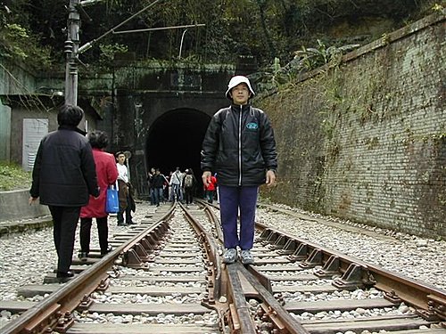 山友們魚貫的步入時光隧道 (舊山線一號隧道)