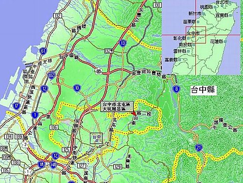 大坑風景區,位於台中市北屯區,屬於大坑頭嵙山系。「大坑」這個地名的由來,是因為早期住在這裡的居民,主要是聚集在一個寬度長達350公尺的寬闊坑谷之中,因而得名。最初來到這裡的人,大多數是客家人;而在更早之前,則是屬於平埔族的分佈地。