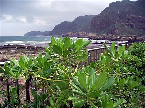 草海桐是常見的海岸樹種,常在砂原後方的海岸林前線叢生,也常和林投、黃槿等樹種混生,形成海岸灌叢。常綠灌木,莖粗大,光滑無毛,高可達2m。葉叢生枝頂,肉質,倒卵形至匙形,上有不明顯鋸齒。花白色,腋生聚繖花序;花冠筒一邊裂至基部,花柱由裂處伸出,花冠裂片緣有不規則淺裂的薄瓣。