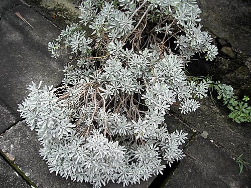 海芙蓉其實是個美麗的別稱,牠是菊科蘄艾屬的蘄艾。牠可以匐伏在岩縫上生長,也可以長成圓團狀的低矮灌木,葉子綠銀白色,像湯匙狀但前端多有三裂或多裂,葉片從枝條前端一叢叢地散開來,像許多迎接陽光的小手。每年秋冬開花時,黃色管狀花聚合的頭狀花序開滿整叢時,向外輻射的盛花畫面,使秋冬的灰暗顏色一下子亮麗了起來。