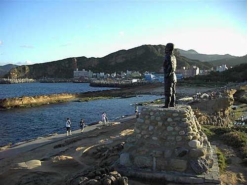 手抓一綑繩索,凝視大海,此即為「林添楨」塑像,民國53年3月18日,氣候不佳,一名前來遊玩的學生,不小心滑墜入海,被海浪捲走。當時林添楨在附近販賣東西,立刻躍入海中,拯救學生,但因風浪太大,兩人皆不幸為大浪吞沒,為紀念其捨身救人的精神,因而樹立此座銅像。