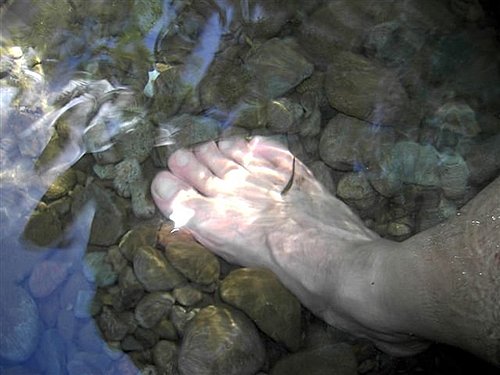 回程在清水溪裡泡腳