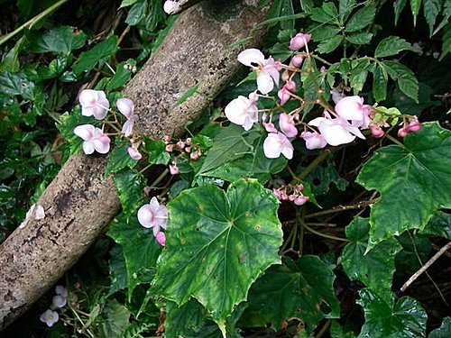 水鴨腳秋海棠雌雄異花,是台灣北部最常見的秋海棠了,它的莖節膨大匍伏地上呈現紅色,可以不斷拓展領域,所以在陽明山潮濕的地方,常可見它們大批地出現。有人說它的葉子和鴨腳很像,便為它取了這個可愛的名字。在七、八月,在濕潤的林下常可見到它粉紅色的花,增添了夏季無限的情趣。