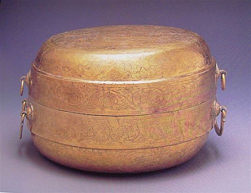 銀盒蓋面微微隆起,造型簡潔而端莊,鎏金處理使得整件器物顯得格外富麗堂皇,最令人讚嘆的則是銀盒胎壁極為輕薄,厚度僅有一公釐,展現了令人驚訝的工藝水準,毫無疑問是五代金銀器中的精品。