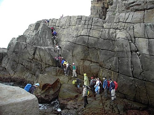 貼著岩壁小心前進