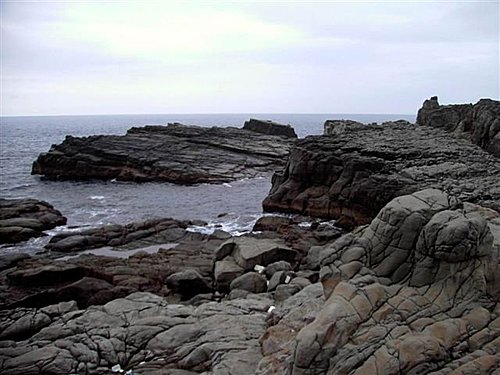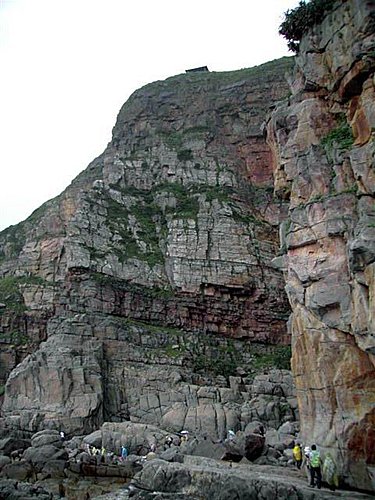 此地所見的岩石,以白色的砂岩為主,偶有顆粒較粗之礫岩,組成的成份多為石英,顆粒間膠結十分良好,所以岩石非常的堅硬;當海浪侵蝕時極易形成突出的海岬,同時此岩層有發育良好的節理面,所以岩石多呈現塊狀,而節理間的空隙常集聚結晶良好的石英顆粒,岩石內含鐵質成份且透水性佳,所以常可於岩石表面看見繡紅色的風化紋。