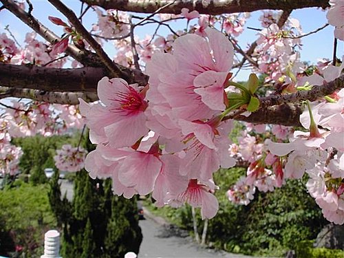 吉野櫻原產於日本扶桑,於1903年日本引進,由於品種不同,花色有雪白和粉紅兩種,其花朵常數朵齊開而形成一大叢花簇,相當壯觀,吉野櫻的花瓣薄如輕絲、白如雪,相當惹人憐愛,也最受遊客喜愛。