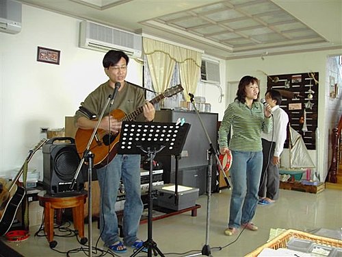 正為大家演唱"趕路的雁"詩歌