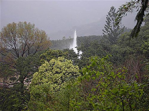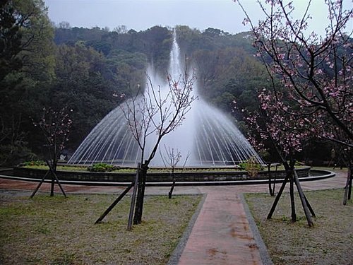 沿湖山路進入公園經過大門入口,首先映入眼簾是一座大型噴水池,直徑十九公尺、池高九十公分、水深七十五公分,外環花台植有四季草花,池上細霧濛濛,蔚為奇觀。