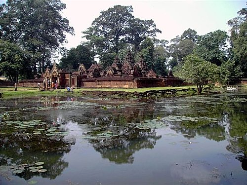 女皇宮距離吳哥窟25公里 ,該寺素有「女人的城堡」之稱,因為相較於其他寺廟顯得嬌小,最令人讚賞的是寺中的精細雕刻,四壁上的提娃妲女神,並不遜於世界級大師名作。據說此廟是由一位功高大臣所建,為了不冒犯國王,便將建築尺寸縮小,例如廟堂的大門僅一百五十公分高,一般人出入都皆須彎腰而行。