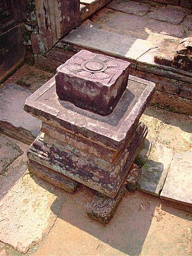 古代高棉人信仰濕婆神(Siva),是以最原始的陽具Linga形式來表示。陽具是以「一根石雕圓柱」代表「神的本質」,陽具直立於女性生殖器「一塊方形凹槽」Yoni基座上。這種陰陽具Linga-Yoni的組合石雕被供奉於早期的高棉神殿內部,祭司便是在它的周圍舉行宗教儀式。