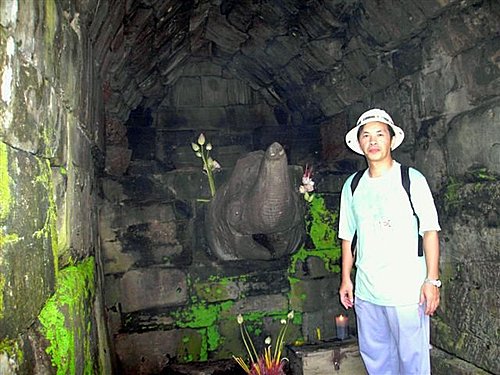 周達觀說的「金方塔」還在圓壇孤島上,只是「金」已剝落無存,殘磚斷瓦而已。寺塔門龕上仍殘留菩薩立像,可以想見當年彩飾金箔的華麗盛況。