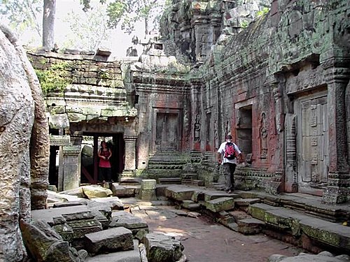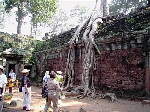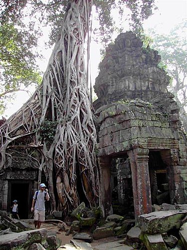 柬埔寨大吳哥王城內有許多具代表性的主要宮廟,其中,值得一提的是塔普倫寺。寺的四周覆蓋著古老巨樹,據說自吳哥王朝於十五世紀棄城逃離之後,鳥兒的排泄物媒介,經年累月任由大自然日曬雨淋,就這麼生長起來。直到十九世紀被發現時,已經覆蓋成林了。