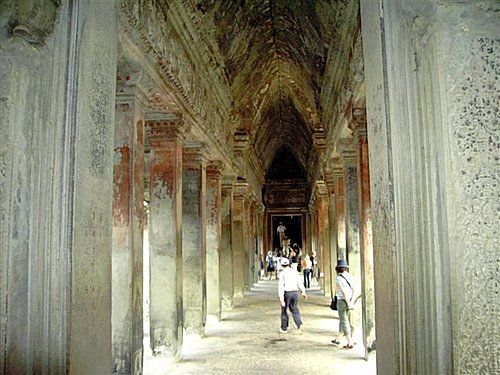 吳哥窟有兩道城牆作區隔,第二道圍牆的裡面才是神廟的所在地。內部總體又分為三層迴廊,代表:地獄、人間、與天堂。當中,每一處都有像院子一樣的設計,是由許多十字型的走廊組合而成的。