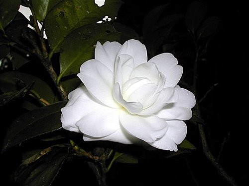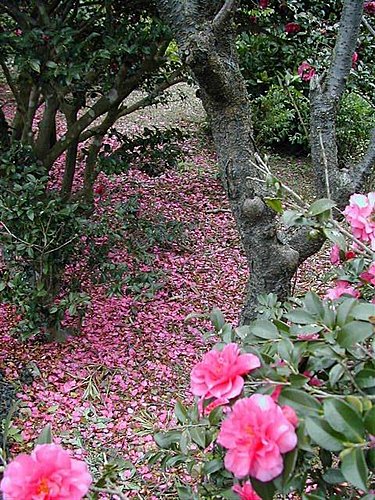 山茶花總是在嚴冬中開得那麼美麗而自得。當庭院中大部份的植物都落葉而顯得枯乾無生氣時,即使在已有積雪的院子裡,她還是靜靜地綻放著。那不僅讓人很容易感染到一份高傲,也更令人覺得她的深沉與謹慎。因此,她的花語之一就是「謹慎」。但是,這一份深沉和謹慎,也使她覺得份外的孤寂吧! 既使內心有著無限的熱情,也不能傳答給對方。....所以,山茶花的另一個花語就是「了不起的魅力」,無論何時,她都對自己擁有十分的自信呢!在花季時,與杜鵑花相映紅,特別顯出她的美麗。