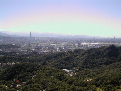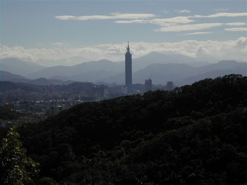 從碧山嚴的廟埕看台北市的東西兩大地標
